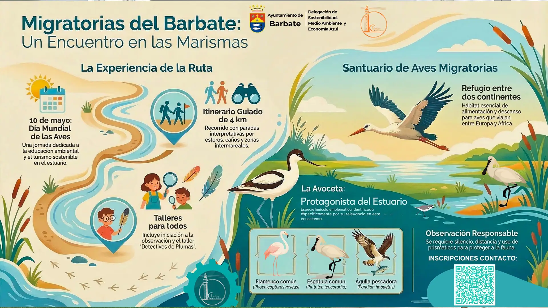 El programa incluye actividades técnicas, talleres y visitas guiadas a distintos enclaves naturales del municipio, con especial protagonismo para las marismas del río Barbate, uno de los espacios de mayor valor ecológico de la costa gaditana.