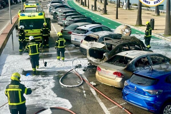 Cuatro vehículos afectados en un incendio en la Avenida de la Bahía, en Cádiz
