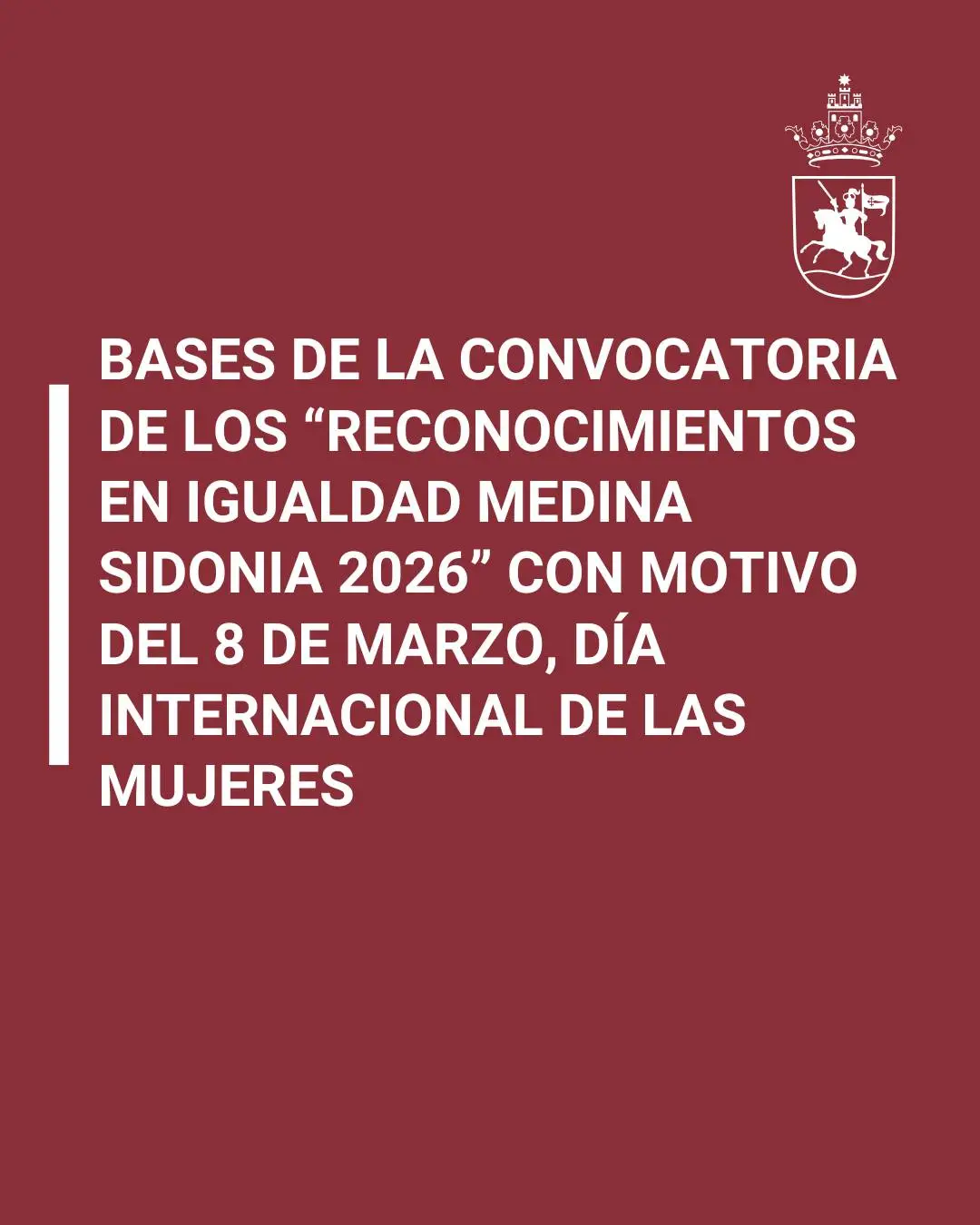 El Área de Igualdad del Ayuntamiento de Medina Sidonia ha publicado las bases de la convocatoria de los “Reconocimientos en Igualdad Medina Sidonia 2026”, una iniciativa que se enmarca en la programación del 8 de marzo, Día Internacional de las Mujeres.