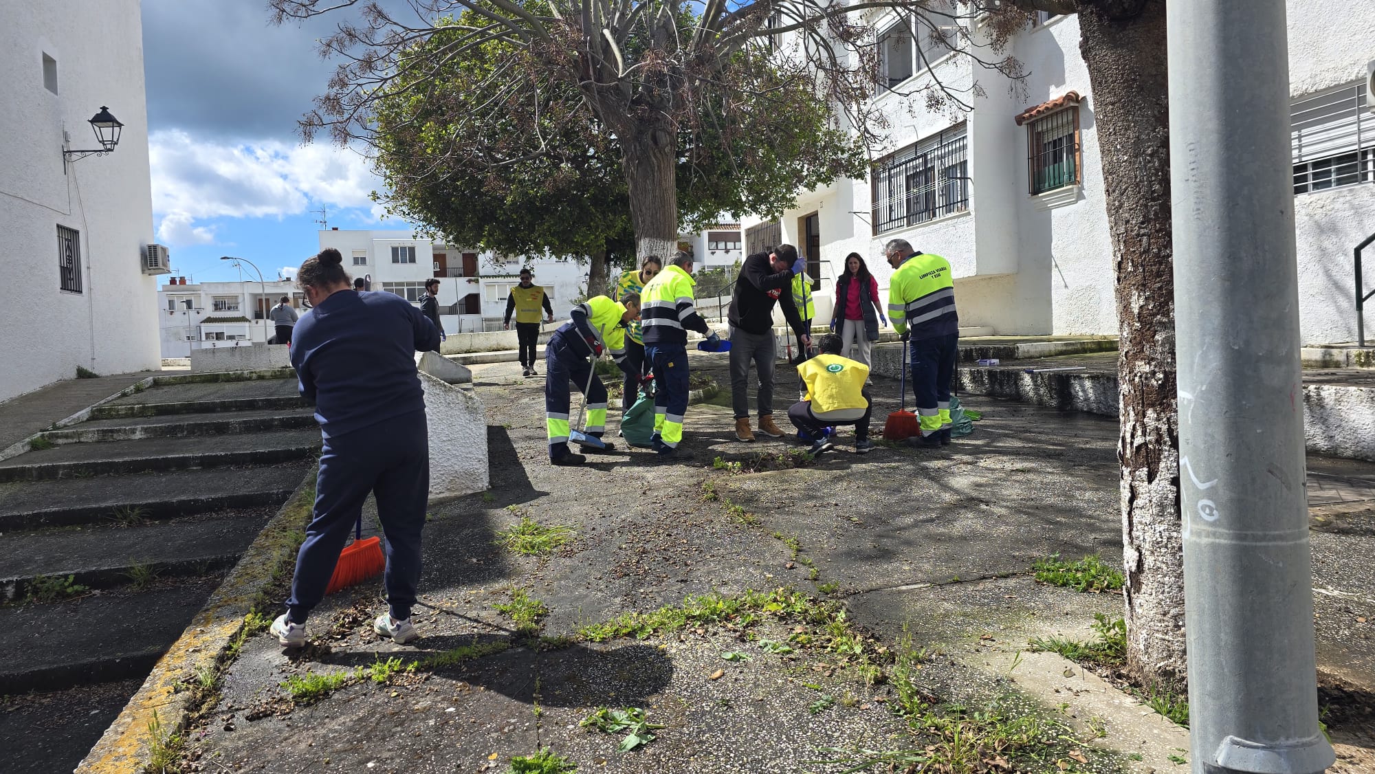 Tras la sesión formativa, los participantes se distribuyeron por distintos enclaves de Barbate para realizar labores de limpieza y adecentamiento. Las actuaciones se desarrollaron especialmente en la Zona Montaraz, las barriadas de Fátima y El Pinar, el entorno de Carrero Blanco y la explanada frente al edificio de Servicios Sociales.