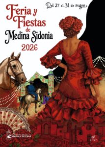 El cartel de la Feria y Fiestas 2026 ha sido diseñado por la joven asidonense María Gutiérrez García, con la obra titulada “Medina Sidonia, Feria y Tradición”. Según ha explicado la autora, el diseño recoge elementos característicos de la feria local, combinando la tradición ecuestre, el arte flamenco y la ambientación nocturna propia de estas celebraciones.