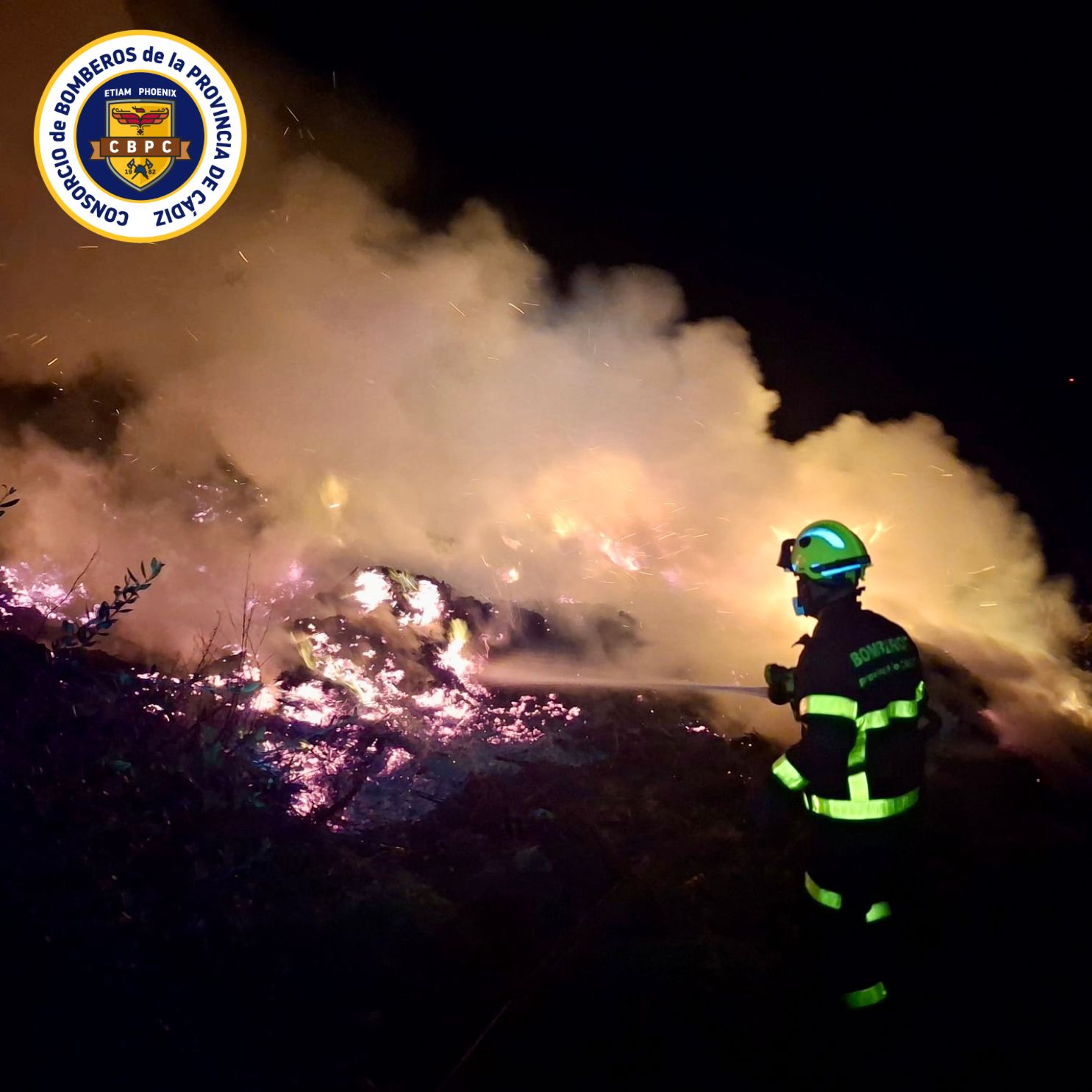 En el operativo participaron tres bomberos del Consorcio de Bomberos de la Provincia de Cádiz, que actuaron con una autobomba rural pesada, utilizando alrededor de 5.000 litros de agua.
